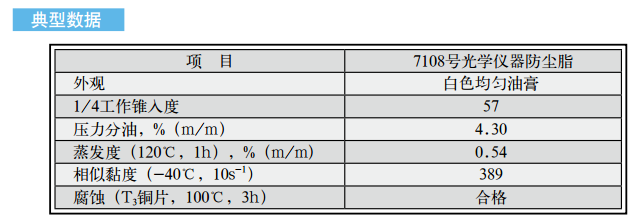 长城牌7108号光学仪器防尘脂是以无机稠化剂稠化合成油,并加入结构改善剂等添加剂精制而成。