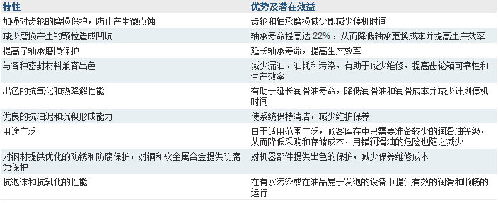 Mobilgear 600 XP 系列产品具有以下特性和潜在的效益: